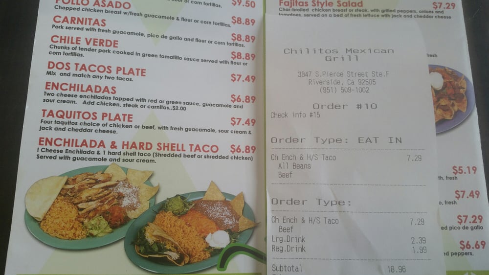 Indulge in the savory flavors of Chilitos Mexican Grill, a Mexican eatery located in Riverside, CA. Known for its vibrant menu filled with traditional dishes, Chilitos offers a variety of options for all preferences, including vegan and vegetarian choices. From the mouth-watering Ensaladas like the Avocado Chicken Salad to the flavorful Tacos such as the Fish Taco and Carne Asada Taco, each dish is bursting with authentic Mexican spices and ingredients. The Sopes, featuring thick corn tortillas topped with beans, carne asada, carnitas, or chicken, are a must-try.